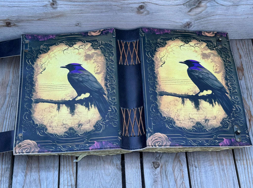 12"x8" Wiccan Crow Leather Journal | 360 Vintage Pages (New)